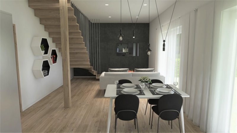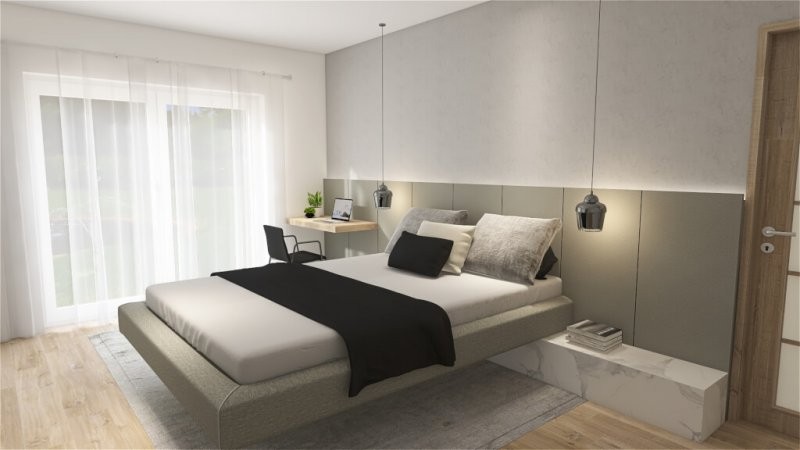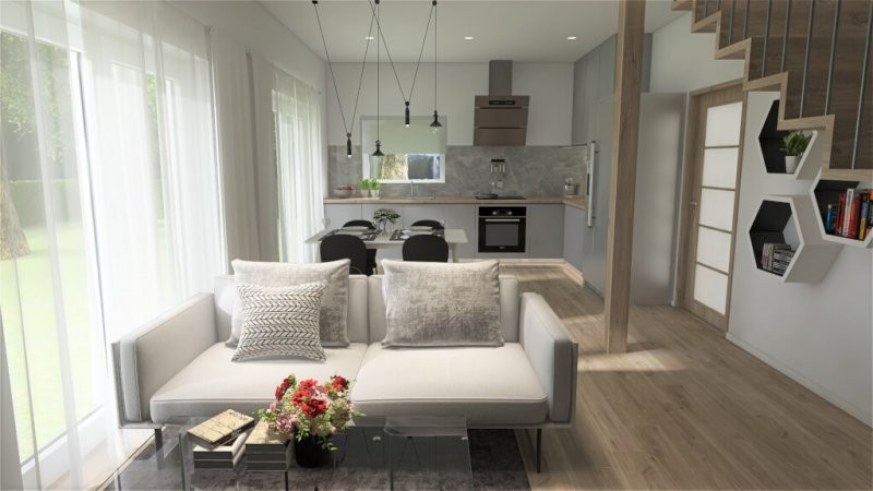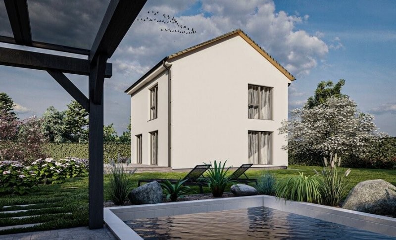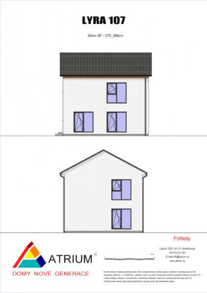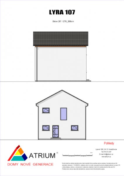 Představujeme vám nový patrový dům s označením Lyra 107. Jeho předností je plnohodnotné patro, bez šikmin. Lyra 107 se hodí i na menší pozemek a je určená pro bydlení čtyř osob. V přízemí je prostorný společný prostor s kuchyní a obývacím pokojem. Z obývacícho pokoje můžete vyjít ven do zahrady. Vedle obývacího pokoje je místnost, která může sloužit jako pracovna nebo jako hostinský pokoj. V patře jsou dvě ložnice, šatna a koupelna s WC.