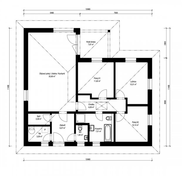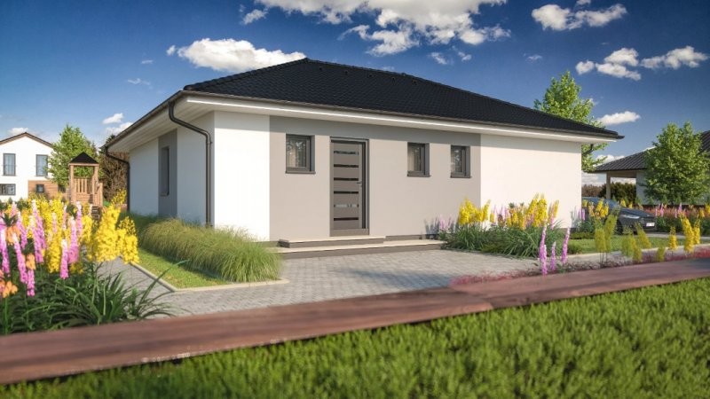 Prostorný bungalov Madera 2-97 s půdorysem ve tvaru písmene L. Rodinný dům s velkorysou společenskou a oddělenou intimní zónou s dostatkem úložných prostor. Jistě si oblíbíte terasu, která může být zcela či částečně zastřešená.