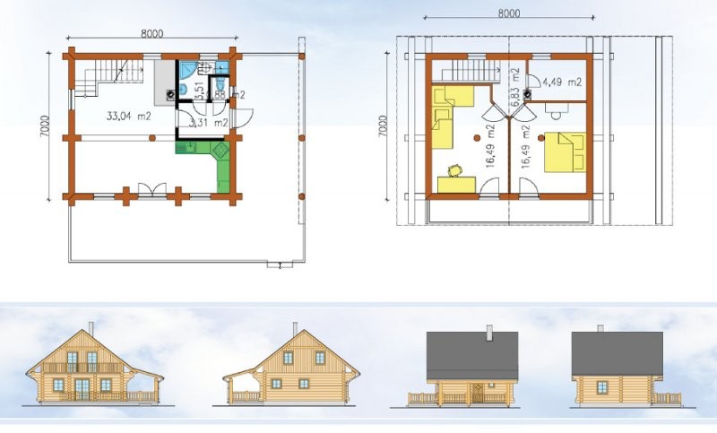 Dřevostavba Manitou je menší klasický srubový dům s velkou, částečně zastřešenou terasou. V přízemí se nachází uzavřené zádveří s WC a koupelnou, dále pak obývací pokoj s kuchyňským a jídelním koutem. V podkroví jsou situovány 2 pokoje s přístupem na balkón a komora. Tento srub je ideální jako rekreační objekt a nebo jako rodinný dům pro menší rodinu.
