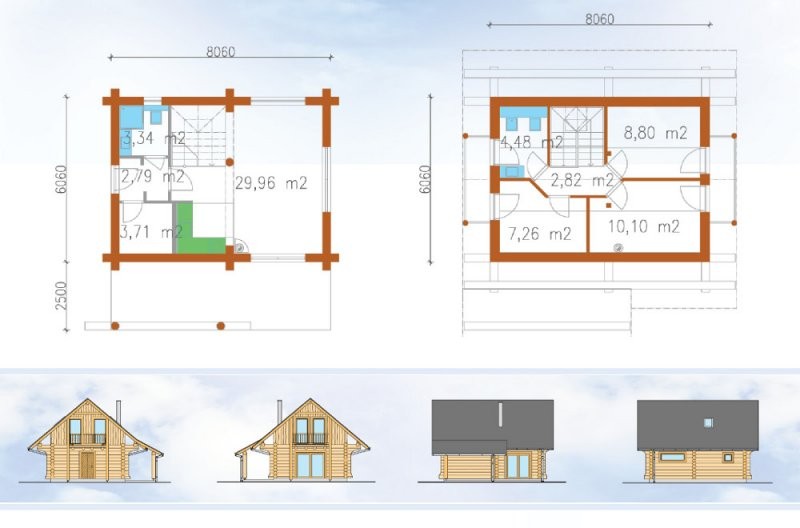 Dřevostavba Milton je menší srubový rodinný dům s obytným podkrovím se zastřešenou terasou vhodný pro 4 člennou rodinu. K srubu je navrženo stání pro auta a sklad zahradního nářadí. Z malého zádveří je přístupná koupelna s WC, technická místnost a otevřená obytná část, kde se nachází kuchyňský kout s obývacím pokojem a schodištěm do podkroví. Z obývacího pokoje je vstup přímo na terasu. V podkroví jsou umístěny tři menší pokoje a koupelna s WC. Z každého pokoje je přístupný balkon.