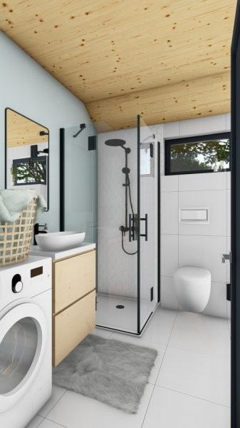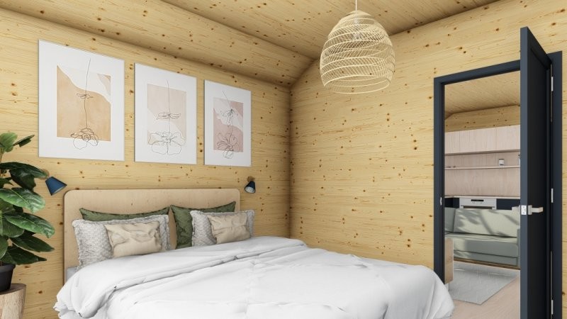 Mobilní dřevostavba André je, při použití kvalitních izolačních materiálů, vhodná pro rekreační i celoroční bydlení. Dispozičně je řešena jako 3+kk. Obývací pokoj s kuchyňskou linkou lze francouzským oknem propojit s prostornou venkovní terasou. Další dva pokoje můžete využít jako ložnici a pracovnu nebo dětský pokoj.