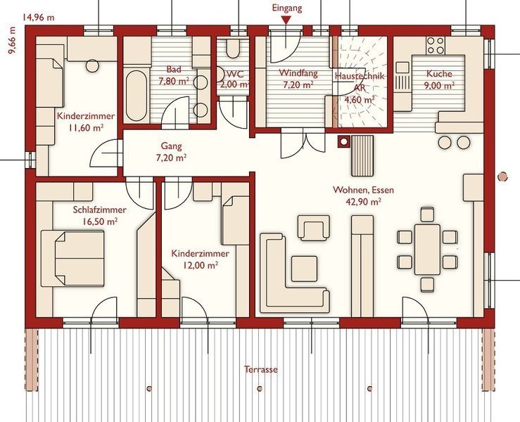 Kvalitní přízemní dřevostavba vhodná pro nenáročný mladý pár nebo jako seniorské bydlení s dispozicí 2+1/kk.