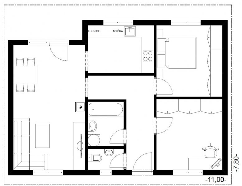 Menší dřevostavba na klíč s jednoduchou architekturou je řešená pro starší manželé či rodiny, které již nepředpokládají další zvětšování. Svým dispozičním řešením se blíží standardu městského bytu. Zajímavě řešený obytný prostor s kuchyní propojenou oddělenou a přesto propojenou s obývacím prostorem. Další úložný prostor je možno na přání vytvořit v půdním prostoru přístupném přes vyklápěcí schody. Tuto malou dřevostavbu na klíč je možno provést dle přání zákazníka se sedlovou či valbovou střechou. V případě sedlové střechy se nabízí možnost obložit štít dřevem. Hledáte-li menší dřevostavbu na klíč s užitnou plochou do 70 metrů čtverečních, je pro Vás MS 65 II ideálním řešením.