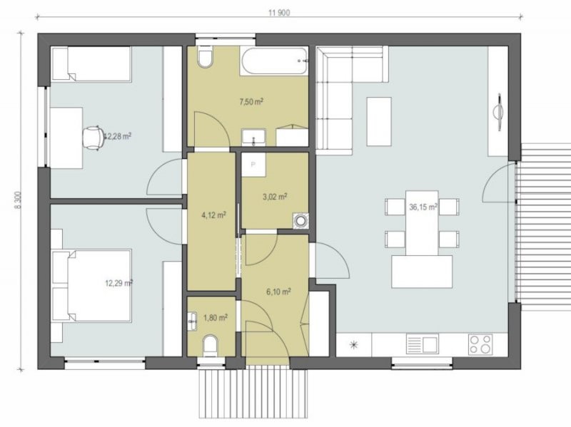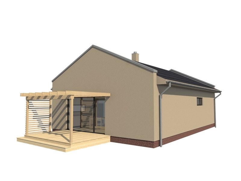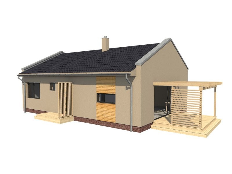 Cílem typového domu Optimal 04 je nabídnout možnost střechy nad hlavou především mladým lidem anebo naopak lidem v důchodovém věku, kteří uvažují o klidném bydlení v jednoduchém domku s jednoduchou údržbou a nízkými provozními náklady. Jedná se o volně stojící přízemní stavbu se sedlovou střechou. Dominantou domu jsou přiznané štítové stěny, které dotváří celkový moderní vzhled domu. Orientace vstupu jihovýchod, jih, jihozápad. V objektu se nachází zádveří se šatní skříní a vstupem na samostatné WC, jehož polohu oceníte především při práci na zahradě. Centrální technická místnost nabízí dostatek prostoru pro technické zázemí domu a umožňuje krátké rozvody všech instalací k příslušným spotřebičům. V zadní části domu jsou orientovány obytné místnosti, tj. ložnice a dětský pokoj/pokoj pro hosty. Třešničkou na dortu je pak prostorný obývací pokoj s jídelnou a kuchyní, z kterého je možný přímý vstup na terasu.
