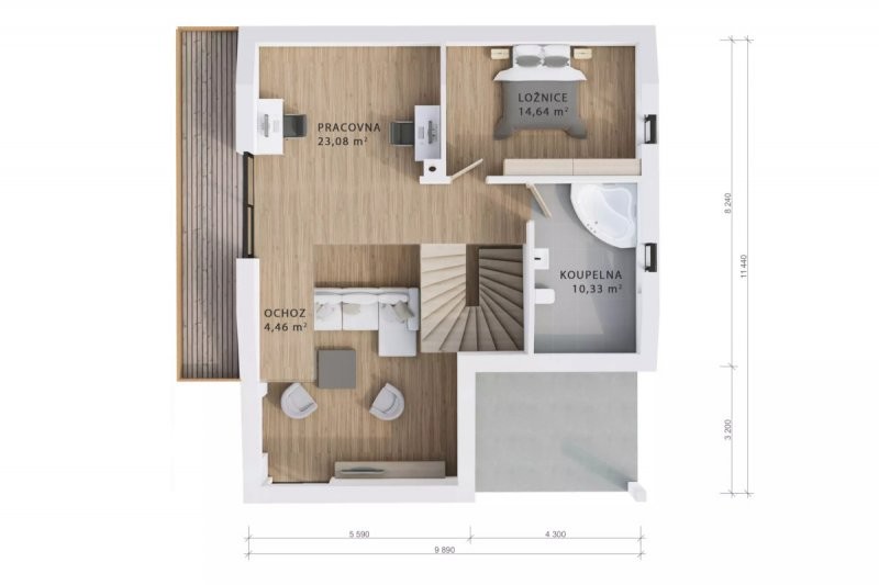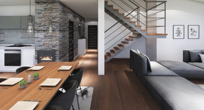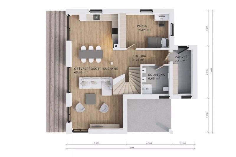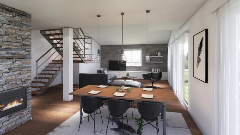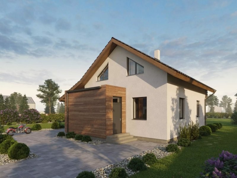 Patrová dřevostavba Easy 102 se vyznačuje velkým obývacím pokojem s kuchyňským koutem a propracovaným dispozičním řešením. Dům je díky zastavěné ploše 102 m2 vhodný na menší pozemek. Rodinný dům je pojatý velmi moderně a dá se kombinovat jak dřevo tak obkladový kámen.