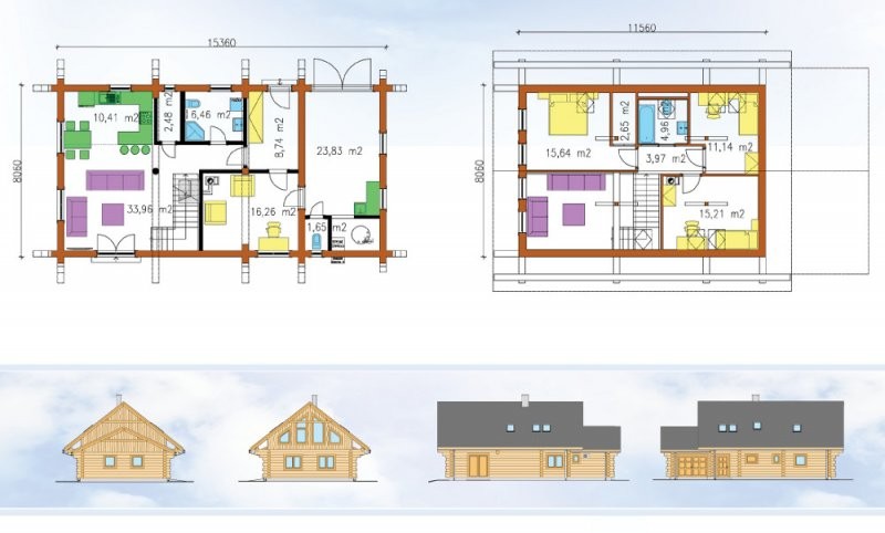 Dřevostavba Perth je velký srubový rodinný dům s garáží, určený pro 4-5 člennou rodinu. V přízemí dřevostavby se nachází zádveří se vstupem do pracovny a do zbylé obytné části. Z pracovny je přístupná garáž. Dále se v přízemí nachází koupelna s WC, spíž, kuchyňský kout a obývací pokoj s jídelnou. Dominantou obývací pokoj jsou otevřený prostor až do krovu, velká okna a masivní dřevěné schodiště. V podkroví se najdeme ložnici, šatnu, koupelnu s WC a dva pokoje.