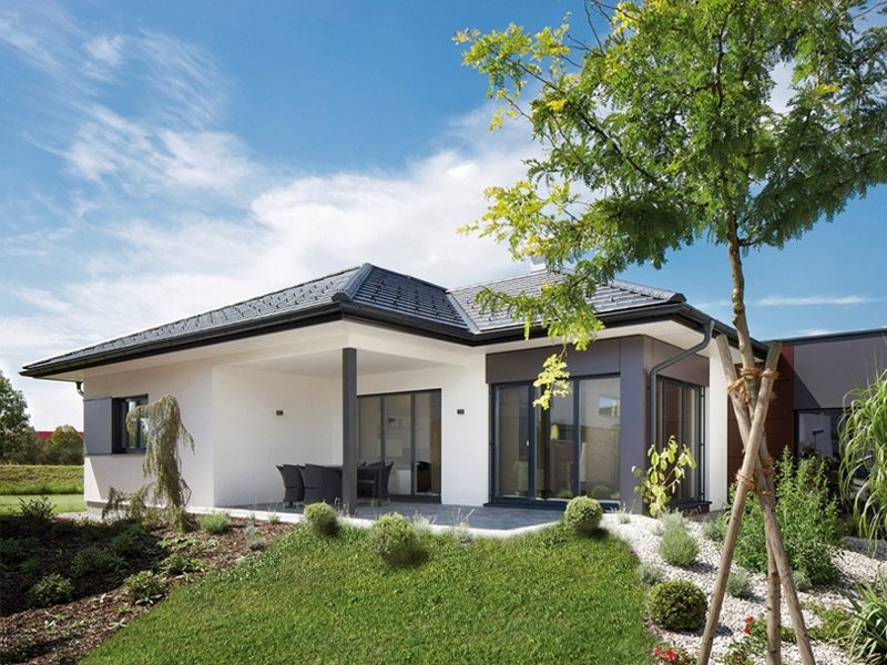 I dřevostavba může být jako krásný a moderní bungalov ve tvaru písme "L".