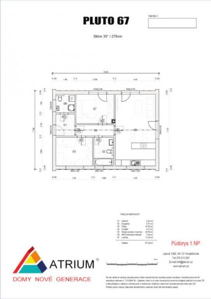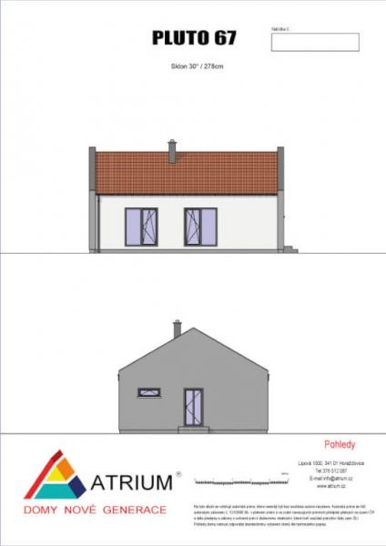 Typový dům Pluto 67 je nejmenším domem z dílny firmy ATRIUM. Kdo hledá malý, ale zároveň útulný dům, je Pluto tou pravou volbou! Z obývacího pokoje vyjdete rovnou na krásnou terasu. Malý bungalov Pluto můžeme upravit na bezbariérový dům. Je ideální pro malou rodinu či stařší manželský pár.