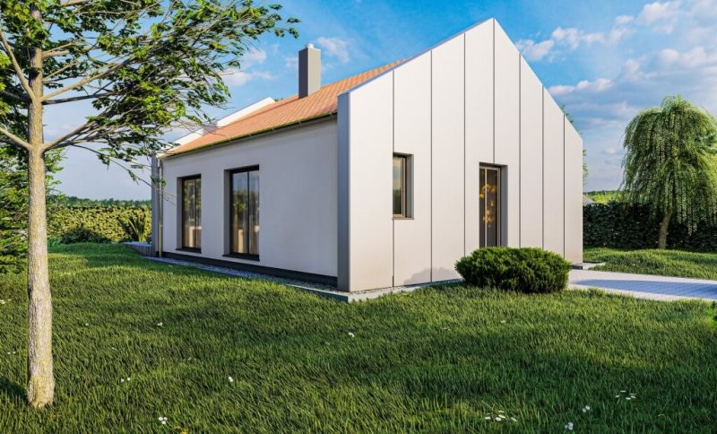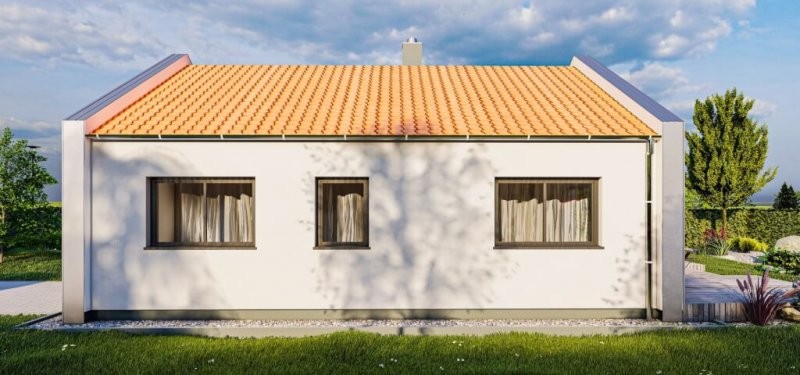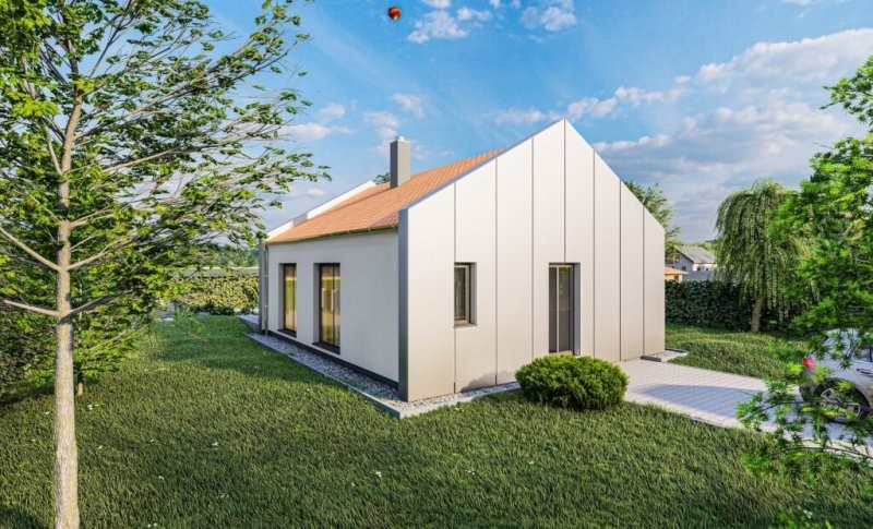 Dům má obdélníkový půdorys o rozměrech 7,8 x 10,6 m. Konkrétní dispozice domu upravíme podle vašeho přání!