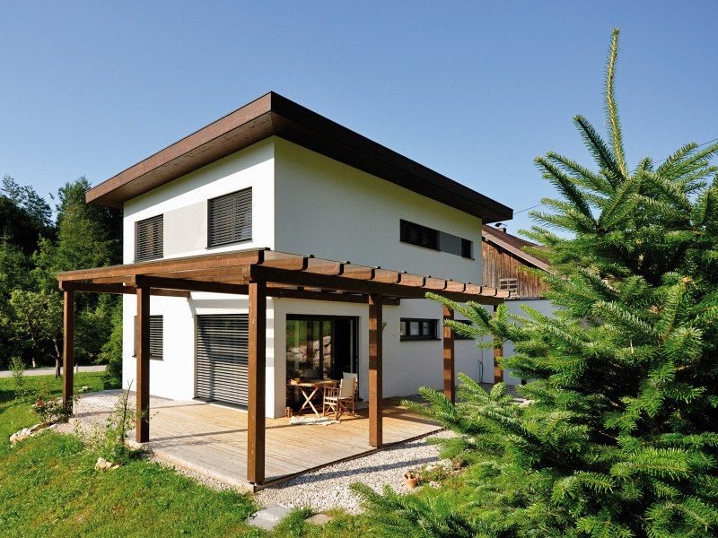 Dřevostavba architektoicky ztvárněná jako městský dům.