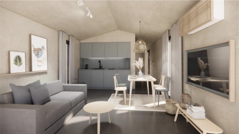 Domy mají dispozici 2+kk (užitná plocha domu je 34,2m2 + sauna 4,3m2 a terasa 19,4m2), což je ideální velikost pro menší rodinný dům, nebo rekreační objekt. Jsou postavené na zemních vrutech, které zajišťují stabilní a spolehlivý základ. Vytápění je řešeno úsporným tepelným čerpadlem vzduch-vzduch, v koupelně je instalováno elektrické podlahové topení, a celý dům je vybaven rekuperací vzduchu, která zajišťuje zdravé a příjemné prostředí. Součástí domu je vnitřní instalace pro chytrou domácnost od firmy Loxone.