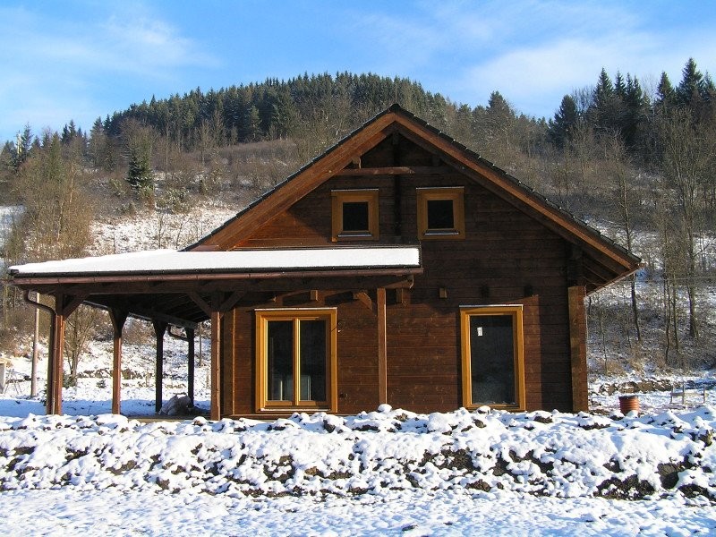 Malý rodinný domek o rozměru 7,4 x 10,4 m je postaven v horské oblasti a splňuje parametry nízkoenergetické dřevostavby. Dvě zimy prověřily tuto dřevostavbu, která má venkovní stěny ze smrkové lamely tloušťky 200 mm. Pozornost byla věnována těsnosti celé dřevěné konstrukce, pohledové kvalitě dřeva, kvalitním oknům a dveřím a dobré tepelné izolaci střešního pláště. Tepelné čerpadlo použité k vytápění do podlahy a inteligentní elektrický systém pomáhají k překvapivě nízké energetické spotřebě. Dřevostavba splňuje přísné požadavky investora na zdravé a pohodlné bydlení.