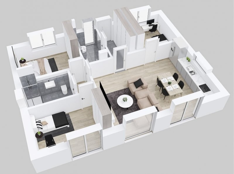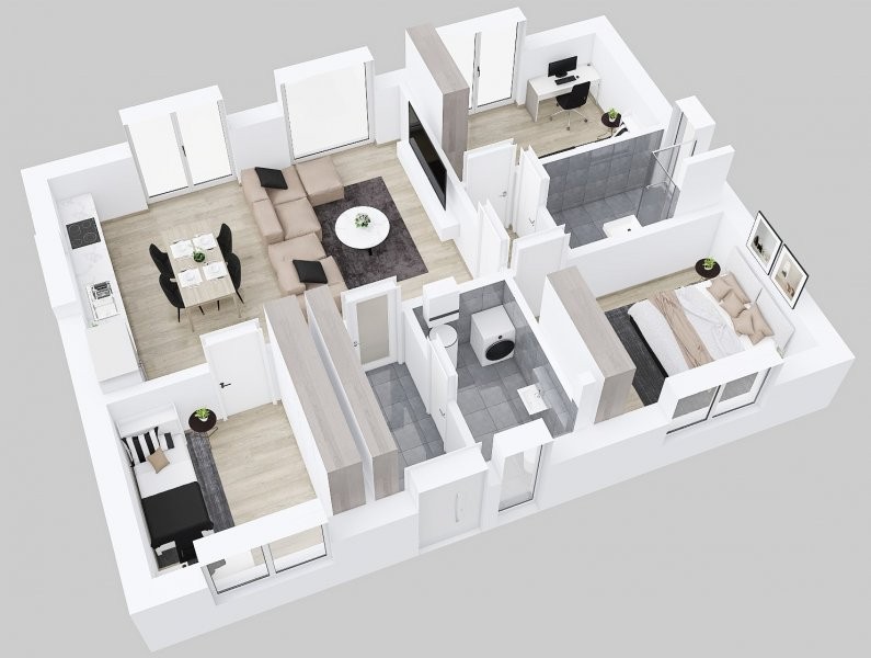 Bungalov Rapido 2-81 se zastavěnou plochou 100 m2 a užitnou plochou 82 m2 nepatří k největším domům, přesto nabízí kuchyňský kout spojený s obývacím prostorem, tři další pokoje, samostatnou koupelnu a vedle zádveří technickou místnost s toaletou a umyvadlem. Jistě uvítáte i možnost pochozí půdy pod sedlovou střechou na uložení sezonních věcí.