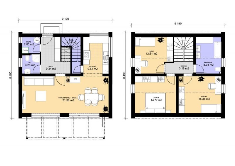 Dřevostavba RD 144 A může být přizpůsobena individuálním požadavkům, tak aby splňovala vše, co si noví majitelé budou přát - např. dřevěný trámový strop v kombinaci s krbem promění interiér obývacího prostoru a dodá mu vřelou a příjemnou atmosféru.