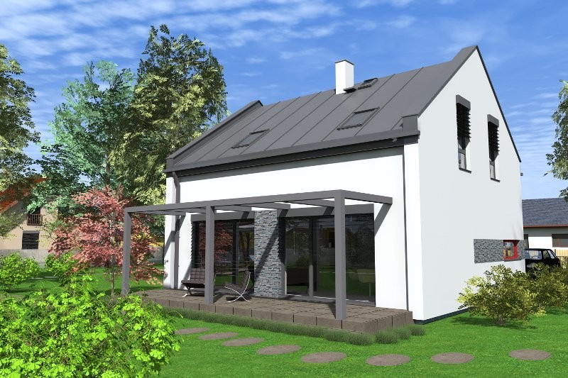 Velikost a dispoziční řešení dřevostavby RD 144 A vychází z prostorových požadavků na pohodlné bydlení 4-5 členné rodiny za velmi příjemnou cenu pod hranicí 3 mil Kč vč. základové desky. Dům je nadčasového designu s použitím moderních materiálů v nízkoenergetické konstrukci pro energeticky výhodný provoz dřevostavby. Velmi vhodné je dřevostavbu doplnit o řešení venkovní plochy formou terasy se zastřešením pergolou - pro příjemné propojení vnitřního a venkovního prostoru. Dřevostavba může být vybavena vzduchotechnikou s rekuperací a rovněž doporučujeme řešení zastínění prosklených ploch jako prevence proti nadbytku solární energie v interiéru.