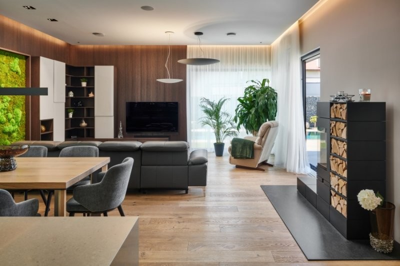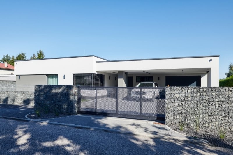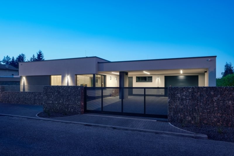 Návrh: BITTNERARCHITECTS, projekční práce: Libor Švehla, DiS., stavbyvedoucí: Michal Miklíček, Inteligentní dům se spoustou inovativních řešení. Návrh si přinesl klient, ale projekt zpracovala kompletně naše kancelář pod vedením Libora Švehly. Stavbu pod vedením Michala Miklíčka realizuje kompletně na klíč také naše společnost. Objekt RD obsahuje jedno podlaží. Při jižní straně domu se nachází krytý vstup, tento je přístupný stejně jako vjezd do garáže po betonové dlažbě vyspádované od domu.