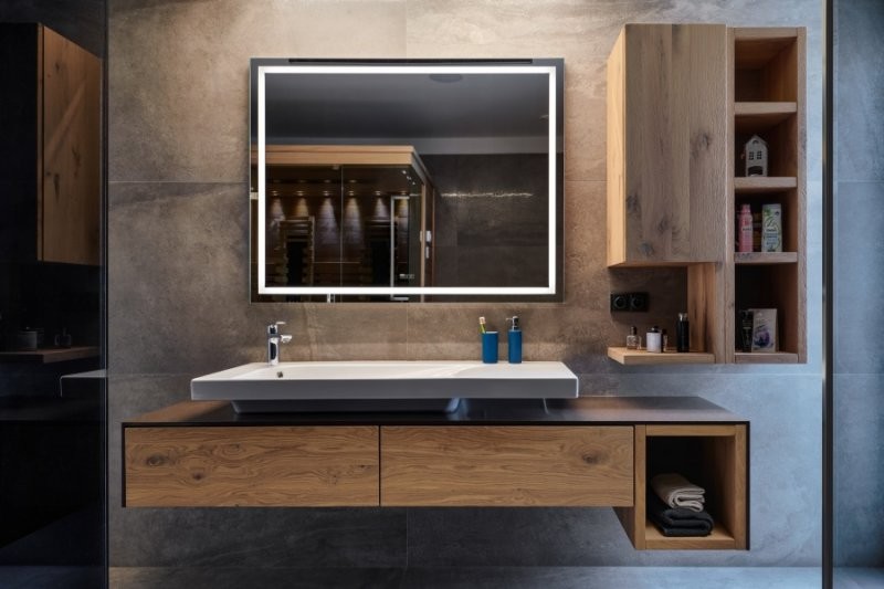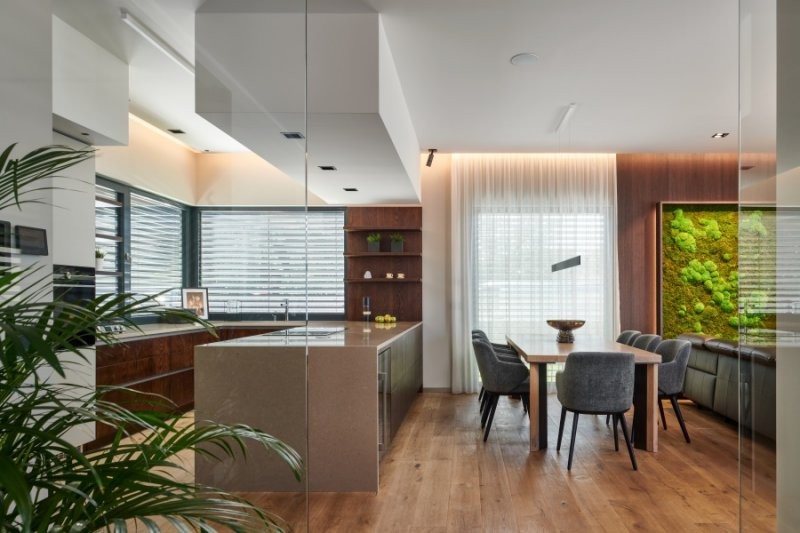 Dispozice sestává ze zádveří, prostorné chodby, tří pokojů, koupelny, ložnice, šatny, koupelny se saunou, obývacího pokoje s kuchyňským koutem, samostatného wc, technické místnosti a garáže. Přes obytné prostory lze dále pokračovat na venkovní terasu.