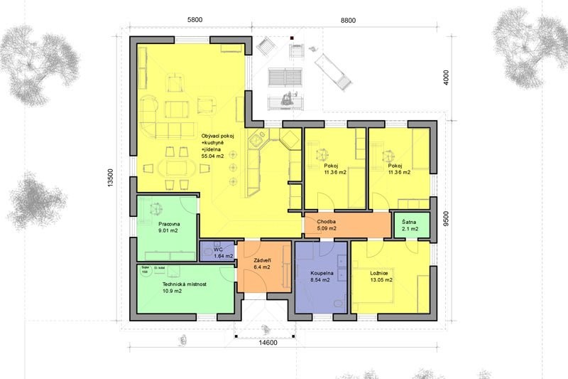 Cena dřevostavby na klíč je uvedena včetně základové desky a DPH.