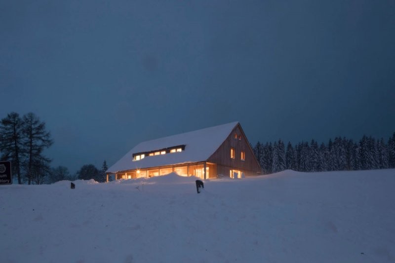 Na pozemku, který se nachází v nadmořské výšce 1100 m n.m. a ve III. zóně NP Šumava, který dříve sloužil jako pastvina navrhli architekti dle požadavků několika investorů dvoj-dům tak aby zapadl do místní drsné přírody a zároveň plně vyhověl všem požadavkům náročných investorů. Pozemek situován na západním okraji obce ve výšce 1100 m n m. Pro tuto oblast je typická semknutost centrální zástavby podle hlavní komunikační osy. Zástavba dále od centra řídne, velikost pozemků narůstá, domy odstupují od uliční čáry, v okrajových částech je charakter zástavby zcela roztroušený. V převážné míře se jedná objekty s funkcí bydlení – rodinné a bytové domy, penziony. Podlažnost 1-2+podkroví, střechy sedlové někdy s polovalbou, hřebenem či podélnou stranou orientovanou rovnoběžně s vrstevnicí.