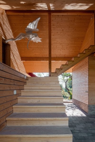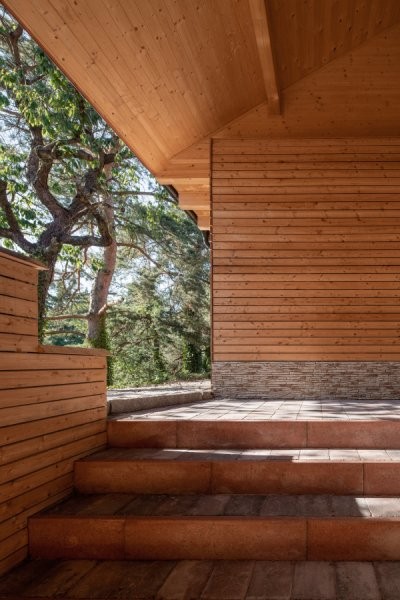 Objekt je navržen jako dřevostavba z CLT panelů pohledových v interiéru. Skladba je difuzně otevřená s provětrávanou fasádou. Obklad fasády tvoří vodorovné modřínové profily, okna jsou dřevěná a střecha skládaná z tašek.