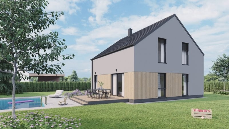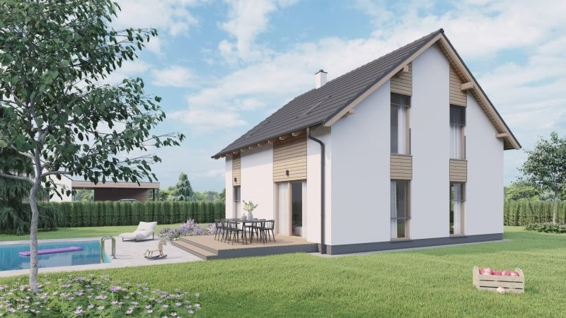 Tento dům umožňuje variantní provedení typu střechy, viz vizualizace.