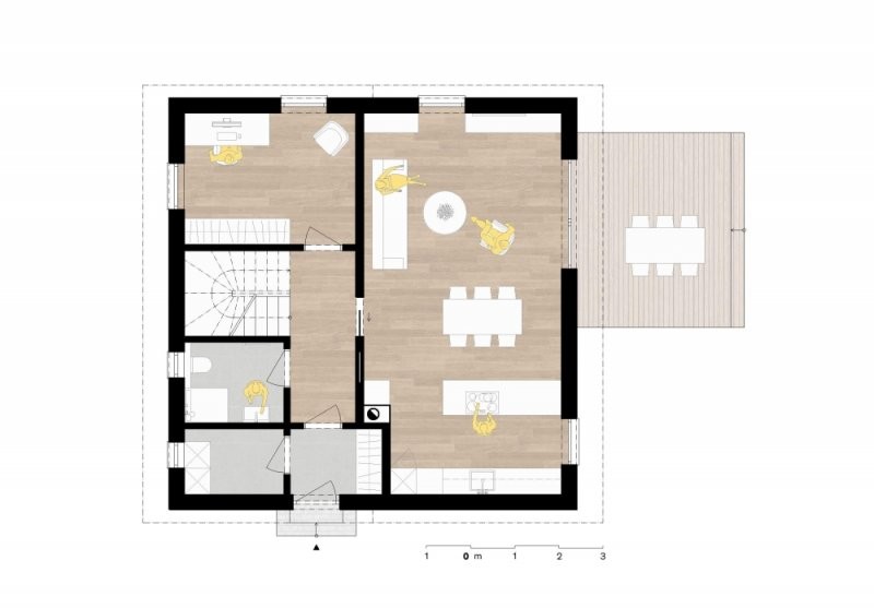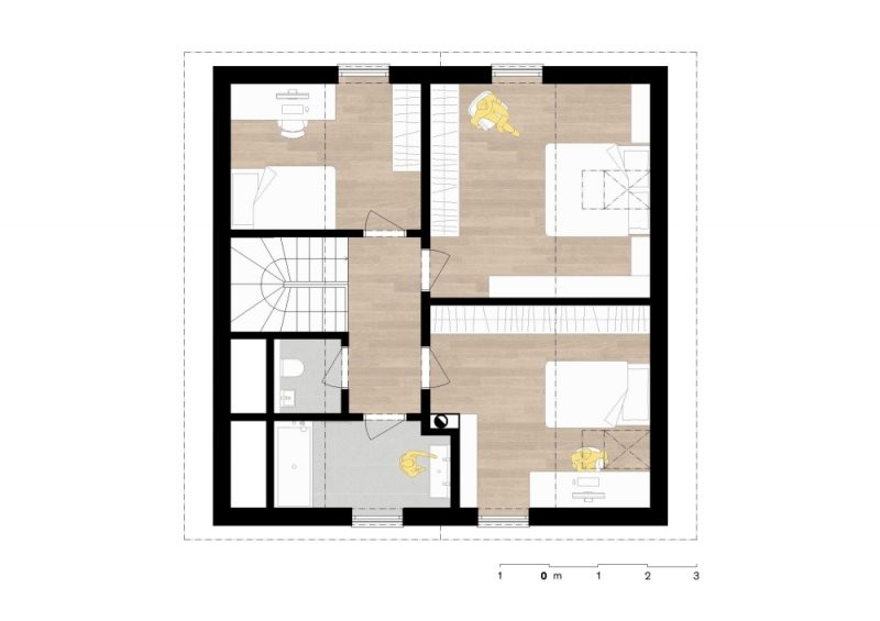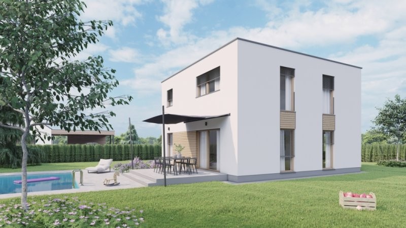 RD 202 je jednoduchý patrový dům. Navržená dispozice 5+kk dokáže poskytnout dostatek prostoru pro komfortní bydlení velkých rodin. V přízemí se nachází zádveří, technická místnost, pracovna, koupelna a hlavní obytná místnost, na kterou navazuje venkovní terasa. V podkroví je ložnice, 2 pokoje, koupelna a samostatná toaleta.