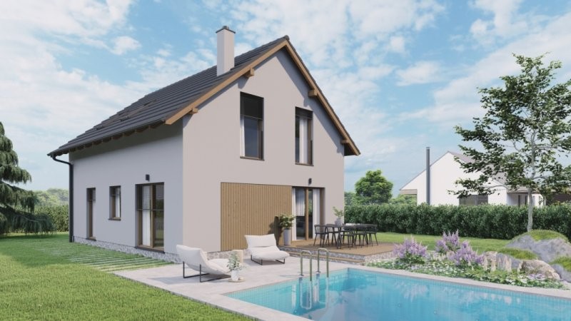 Tento dům umožňuje variantní provedení typu střechy, viz vizualizace.