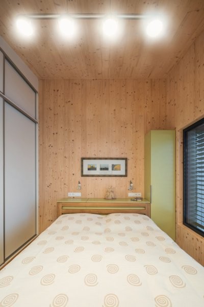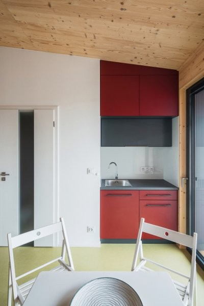 Díky statickým možnostem CLT panelů je ale velké prosklení bez větších příplatků. Nad tímto 15 m oknem pak probíhá konzola střechy, která není podepřena sloupem a ze statického hlediska tak bylo co vymýšlet.