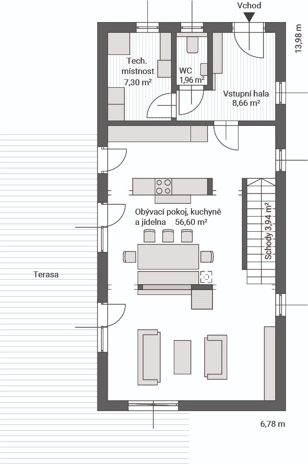 Tento dům zaručeně splní vaše nároky na moderní, komfortní a praktické bydlení. Díky svému efektivnímu uspořádání a prostorným místnostem poskytuje dokonalé zázemí i pro větší rodiny.