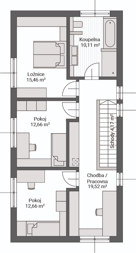 Sera 153 je největší z našich patrových domů. Nabízí velkorysý prostor pro rodinný život i vícegenerační soužití. Jeho nadčasový design a praktické řešení interiéru z něj dělají ideální volbu pro ty, kteří hledají bydlení kombinující moderní styl a maximální funkčnost.