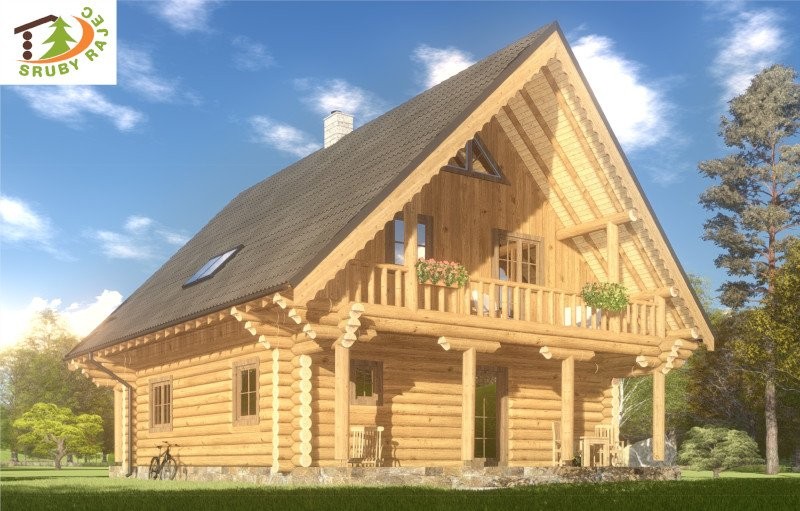 Srub střední velikostní kategorie pro velkou rodinu k trvalému bydlení. V rámci dispozice jsou odděleny společné prostory v přízemí od relaxačních prostor ve dvou nadzemních podlažích. Dominantou stavby jsou prostorné balkony na štítových stěnách v podkroví a kryté terasy v přízemí.