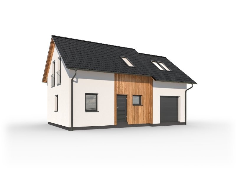 Dispozice 115 m2 patrového rodinného domu Skywood 1-115 je rozdělena do tří prostrných ložnic a koupelny v podkroví, obývacího prostoru s kuchyní, WC s prádelnou a garáže v přízemí. Dispozice ale může být upravena podle přání klienta.