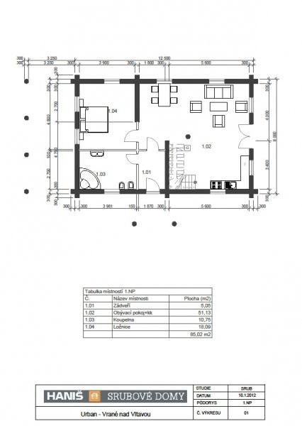 Dispozičně je podkrovní srub na klíč Jirka navržen tak, aby splňoval požadavky pro bydlení až 6. členné rodiny.