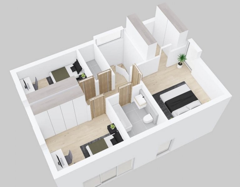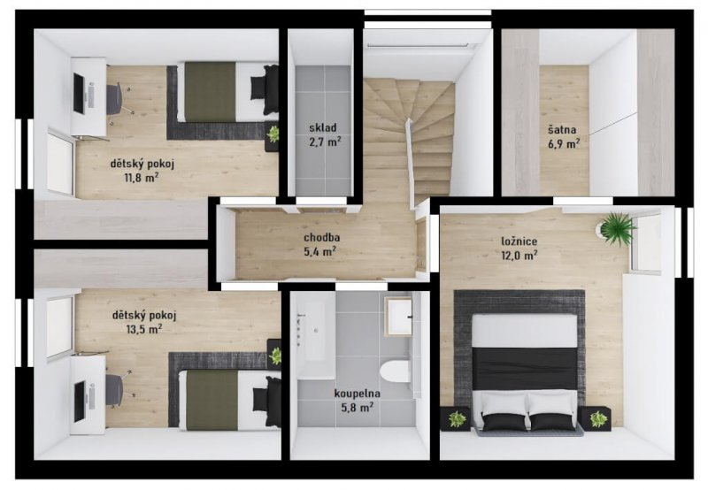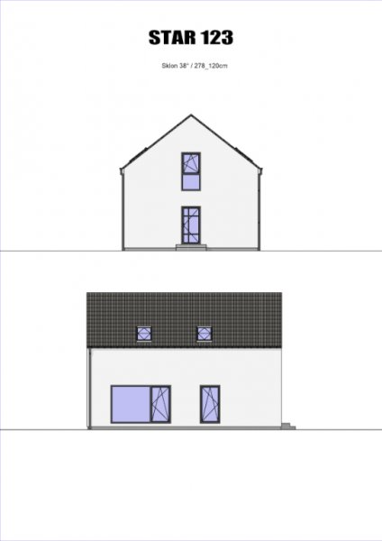 Star 123 je důkazem toho, že i klasické dřevěné domy mohou vypadat stylově. Stačí zmenšit přesahy střechy na minimum, vybrat tmavou střešní krytinu a červená okna v kombinaci s bílou nebo světle šedou fasádou vytvoří krásný rodinný dům se zajímavým designem! Pokud zvolíte krbová kamna, která bez problému vytopí celý patrový dům, navodí navíc příjemnou atmosféru domova. Zároveň můžete použít nerez komín vedený po venkovní stěně. Tento dům je vhodný pro 4člennou rodinu.