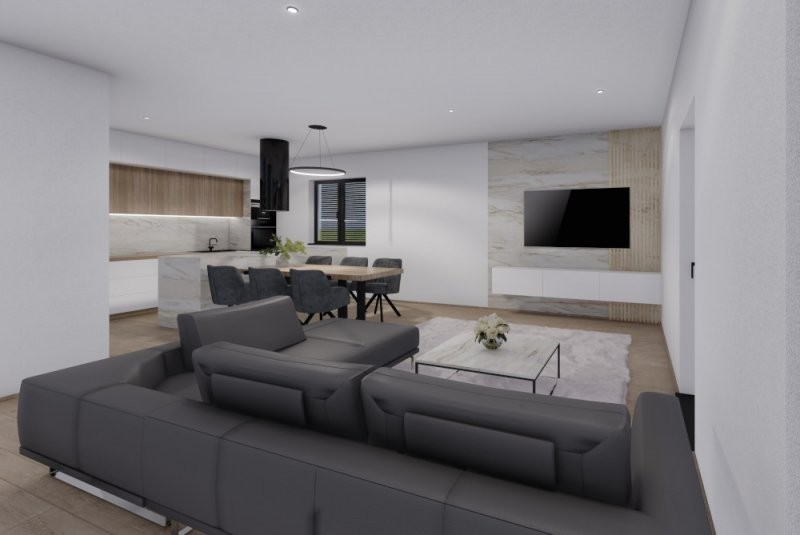 Nízkoenergetický přízemní rodinný dům SWING 125 je postaven ze stavebního systému PURLIVE a může být dodán ve variantě pravá nebo levá, to znamená, že jej lze zrcadlově otočit dle orientace pozemku.