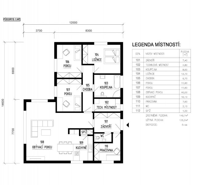 Parametry projektu SWING 125 - dřevostavba na klíč