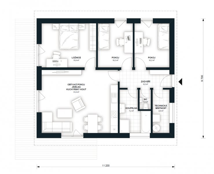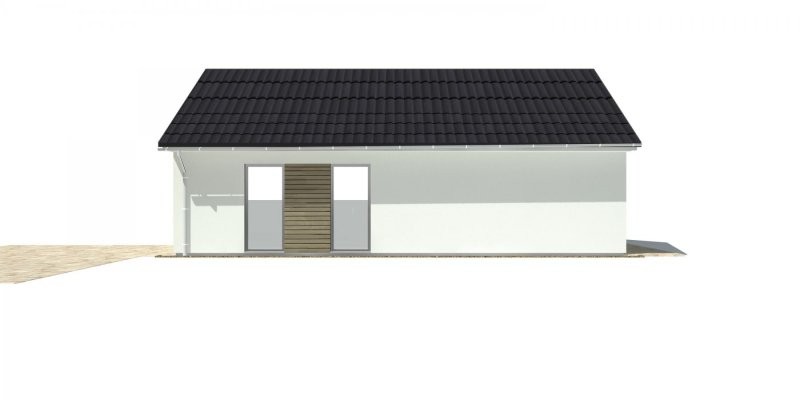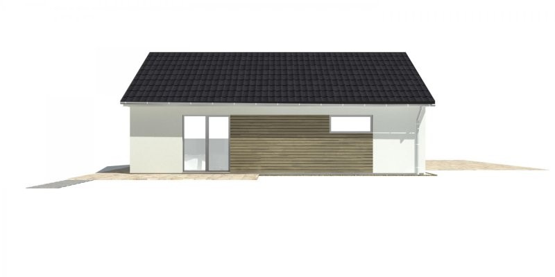 Ekonomická přízemní dřevostavba na klíč pro čtyřčlennou rodinu s možností vybudování skladového prostoru jako součásti domu.