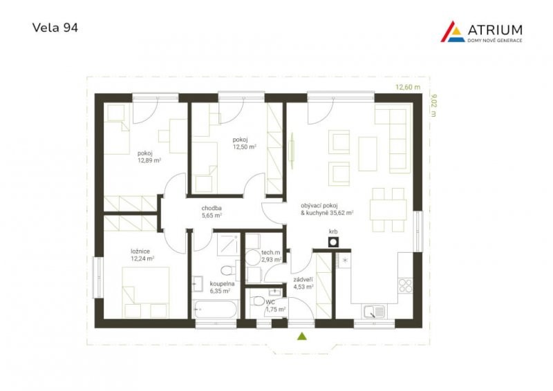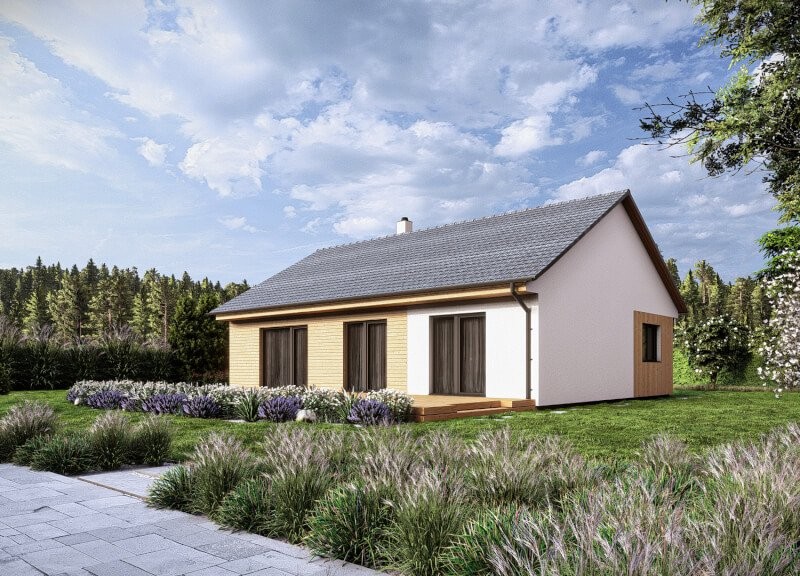 Velmi příjemný menší rodinný dům Vela 94 ukrývá uvnitř 3 ložnice a prostorný obývací pokoj s kuchyní. Z obývacího pokoje vyjdete přímo do zahrady, což jistě oceníte nejen v letních měsících. K navození příjemné atmosféry domova a vytopení celého domu během chvíle je praktické si pořídit krb. Bezbariérové provedení domu je samozřejmě možné.