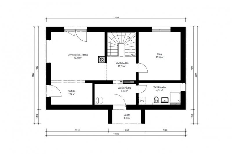| Cena dřevostavby na klíč (vč. DPH) | 7 100 000 |