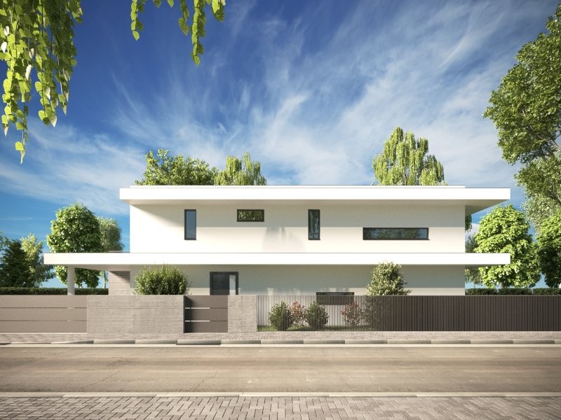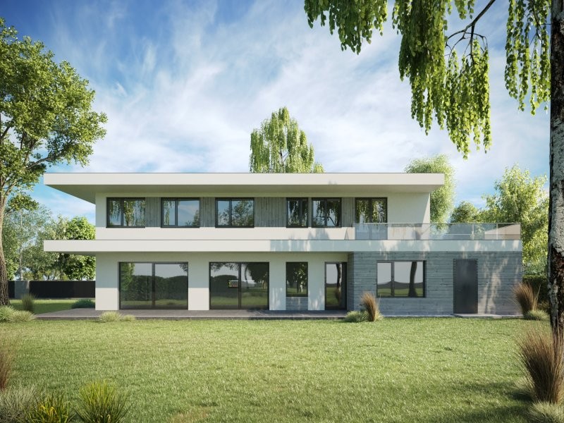 Patrový, prostorný dům pro 4členou rodinu z CLT panelů s rovnou střechou a dispozicí 6+kk.