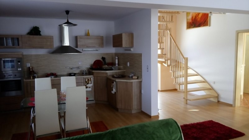 Příčky jsou provedeny z dřevěných sendvičových panelů stejným systémem jako obvodové stěny. Koeficient zvukové neprůzvučnosti RW > 43 dB.