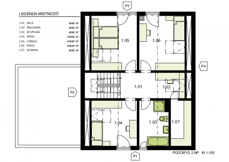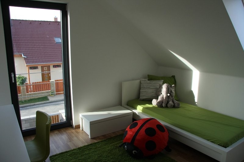 V přízemí domu je obývací pokoj s velkými prosklenými plochami oken a vstupem přímo na terasu, schodiště a kuchyně s jídelnou, které vytvářejí jeden společný obytný prostor. Dále je zde technická místnost, spíž, koupelna s WC a hostinský pokoj. Podkroví je navrženo jako „soukromá část domu", kde se nachází ložnice, dva další pokoje, koupelna s WC, komora a hala, která se dá využít jako pracovní kout. Moderní vzhled domu podtrhuje sedlová střecha bez přesahů. Chcete-li architektonicky zajímavý, moderní a finančně dosažitelný dům, není co řešit!