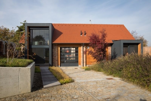 - V exteriéru je použita celá paleta přírodních materiálů – modřínová fasáda, mlatová cesta či zídka z místního pískovce.