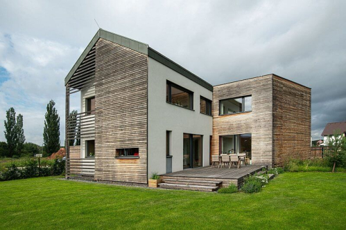 - Fasáda: minerální kombinovaná se segmentovým dřevěným obkladem