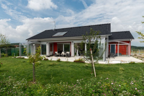 Typizovaný projekt si nechali adaptovat na svoje požadavky (měnila se např. velikost oken a hýbalo se i stěnami, aby rozložení místností odpovídalo potřebám rodiny) a ve fázi, kdy se připravoval projekt, přišla do hry i zmíněná designérka Romana. Ani její návrhy a úpravy nebyl problém do něj ochotně zakreslit a finální návrh tak vznikal v těsné spolupráci s ní. Firma dodala na klíč kompletní dům, investoři si sami zařizovali jen základovou desku a s pomocí lokálního tesaře pak přístřešek pro auta a zastřešenou terasu.