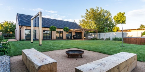 I tak ale příprava zahrady stála stejně jako samotný dům, u jehož propočtů se investorka až tak moc „nesekla". Hrubou stavbu, tedy veškerou potřebnou kulatinu ze smrku a jedle z Beskyd, měla naštěstí zaplacenou ještě před covidem, i když srub včetně krovu na místě vyrostl až v říjnu 2021. Bylo třeba ho honem dostat pod střechu, krytina už tehdy ale byla za úplně jinou než plánovanou cenu.
