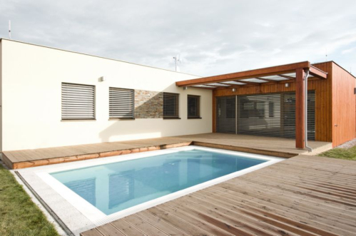 Katka si také zamilovala krytou terasu a přímé propojení obytného prostoru se zahradou i okolní krajinou. Může tam trávit čas, i když prší, což oceňují také oba labradoři. Zároveň je prostor uvnitř prosvětlený, a jelikož z té strany nemají majitelé žádné přímé sousedy, nemusí se bát ani o soukromí. Oba tak rádi a každý den využívají relax zónu s terasou, vířivkou a saunou.