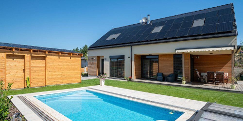 Obr.: Nejen při stavbě domu a jeho vybavení, ale také na zahradě upřednostnili stavebníci tuzemské materiály. Paluba spojující prostor vířivky s venkovním posezením a dílnou je proto z modřínu a pro snížení ekologické stopy bez chemického ošetření, stejně jako fasáda domu. Foto: Martin Zeman