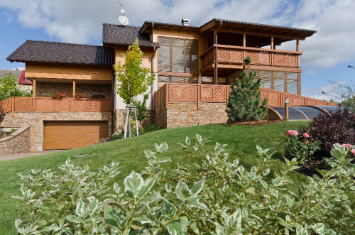 - Konstrukční systém: srubová konstrukce z lepených sušených hranolů s dřevěnou izolací a obkladem