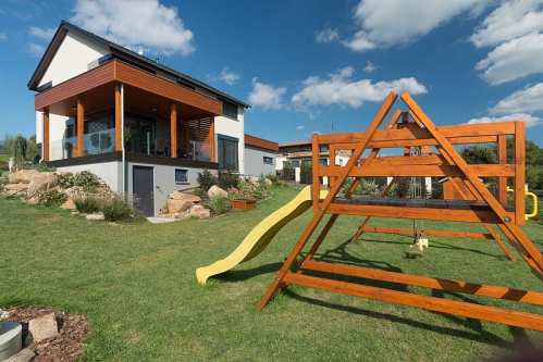 Protože jsme bydleli a vlastně pořád ještě bydlíme nedaleko Brna ve starším domě po babičce, chtěli jsme si postavit jen víkendový dům, nakonec je to ale obráceně – přestěhovali jsme se sem prakticky ihned po dokončení domu a na chalupu jezdíme tam, kde jsme dosud bydleli.